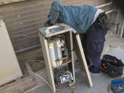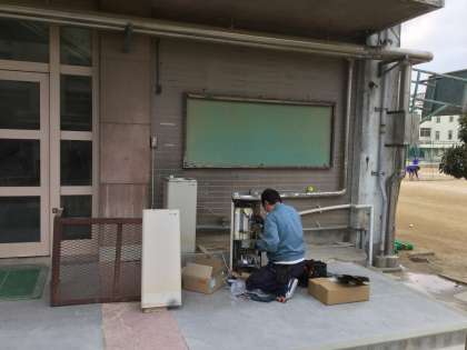 3号館入り口横にあるウォータークーラーの修理をしていただきました。以前からスイッチの調子が悪く、皆さんに不自由をかけていました。