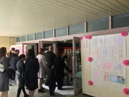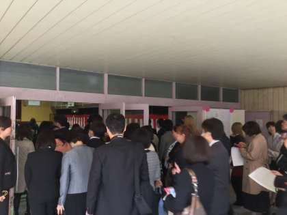 体育館前には長蛇の列となり、3号館1階の中廊下を通り過ぎ、中庭まで伸びていました。