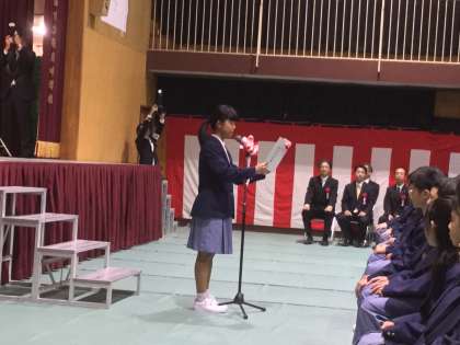 新入生代表の喜びの言葉、在校生代表の歓迎の言葉