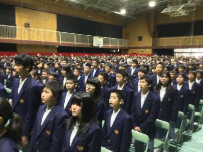1年生は国歌や大阪市歌を大きな声で歌えたいました。