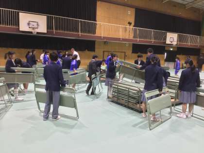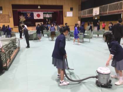 式と保護者説明の終了後、新2年生の協力で式場の片付けを行いました。
