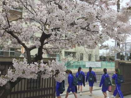 この歌島中学校のホームページのトップを飾っている満開の桜に、もう少しで追いつけそうですね!!