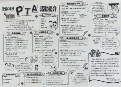 また歌島中学校PTA活動紹介のプリントも配布させていただきました。