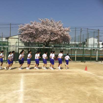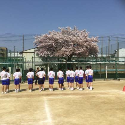 年度初めの授業につき、整列などの団体行動を行っていました。4列に整列して大きなかけ声を出して、元気よくグランドをかけていました。
