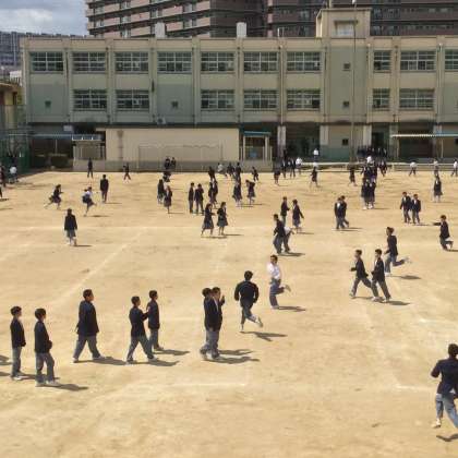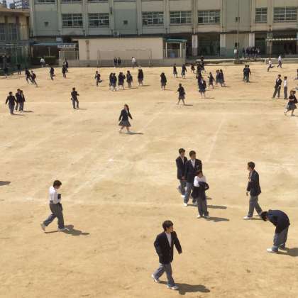 昼食後の昼休みの時間には、たくさんの生徒がグラウンドに出てきて、走り回っていました。適度な気温と心地よいそよ風が、活動的にさせているようでした。