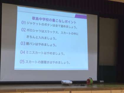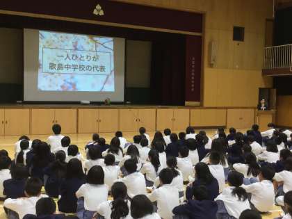 「一人ひとりが歌島中学校の代表」との自覚を持って、「ステキな着こなし」をしてください。私にとってもためになるお話でした。