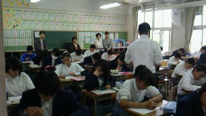生徒達も中学校初めての授業参観で、保護者を気にしながら真剣に授業を受けていました。