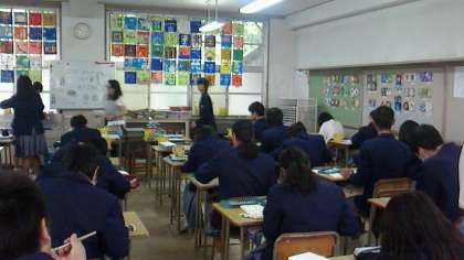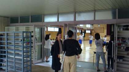 真ん中の写真は、体育館にて男子の体育の授業で、シャトルランをしているところを見ていただきました。