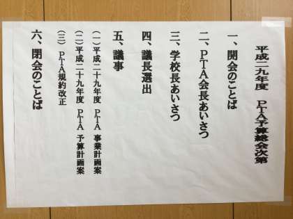 今後1年間PTA活動でお世話になります。よろしくお願いいたします。
