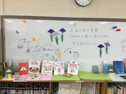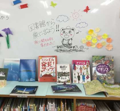 掲示板にはかわいいイラストが書かれてあり、思わず見とれてしまいました。西淀川図書館コーディネーターの前田朝美さんと書いていただいたそうです。