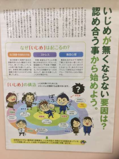 1年生の校舎(3号館2階の中廊下)で、いじめに関するポスターが、掲示されているのを見かけました。