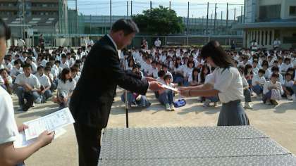 5月29日(月)の全校集会の前に、表彰状の披露がありました。