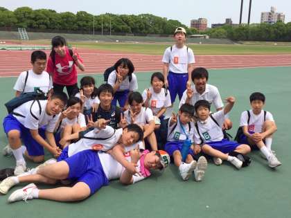 中学校のグラウンドでのトラック1周は200mですが、長居の陸上競技場では400mとなります。スタンドのついた本格的な陸上競技場で、400mを頑張って走り切っていました。
