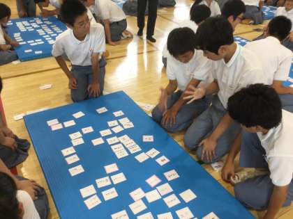 同時に札を押さえる時もありました。時には3人というときもありました。すぐにじゃんけんをして取得者を決めていました。