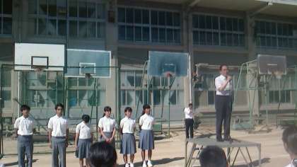 教頭先生は8年前にこの歌島中学校で、理科の教師として赴任されていた当時のことを話されました。またこれから始まるプール授業で、事故のないように安全に注意するようにと話されました。