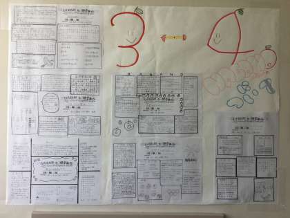 プリントを縦に並べたり、横に並べたりとクラスごとに工夫の跡が見られます。