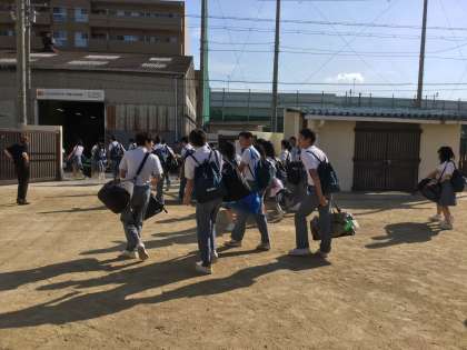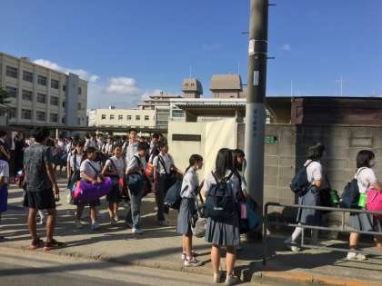 出発式を終えて、268名が7時30分頃にそれぞれの思いをもって、クラス単位での出発。