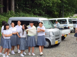 入村式会場で寒い。