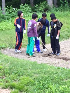 くわで畝を立てる体験をしました。腰の入れ具合はどうでしたか。