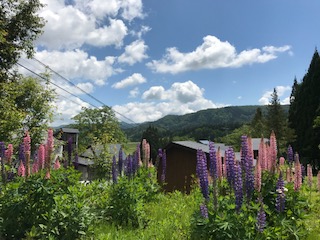 ルピナスの花がきれいに咲いていて、周りの景色に溶け込んでいました。