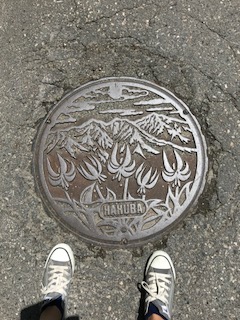 マンホールのふたは白馬らしく「山とかたくり」がえがかれています。