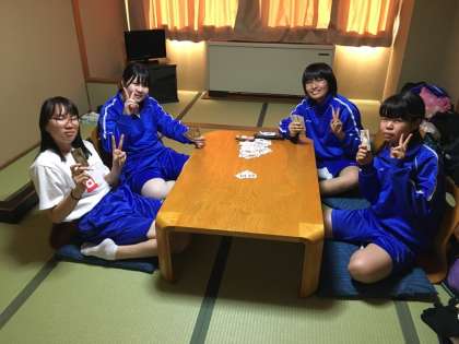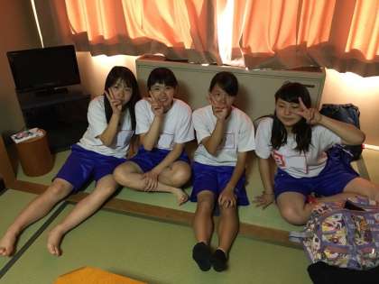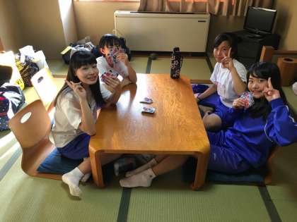 入浴の順を待つ間、それぞれ思い思いに過ごしている6組女子の様子です。