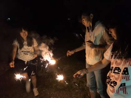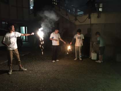 3組の生徒が線香花火をしています。