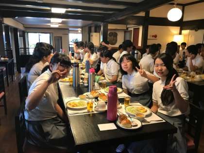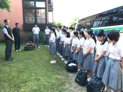 予定通りの時間に朝食を食べ、退館式を終えて出発しました。