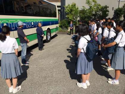 バスを前にした場所でのお別れのあいさつです。