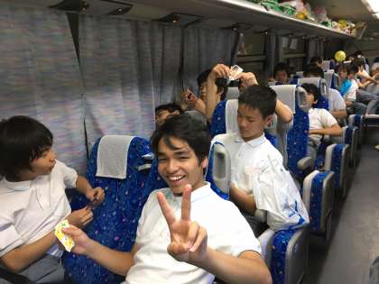ラフティングを終えて疲れ切ってましたが、カレーを食べて充電されました!バスの中ではUNOや唄を歌って盛り上がってます!!