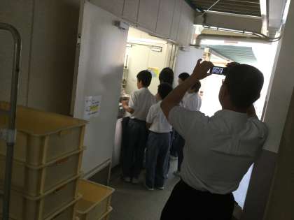 給食工場では衛生管理や調理から配送に至るものを工場で撮影し、学校では、学校での到着・配膳・喫食・返却の撮影をされました。