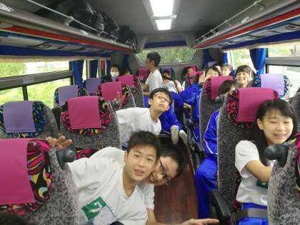 バスの停車地まで行き、荷物を預けてさあ出発です。車内では楽しそうですね。