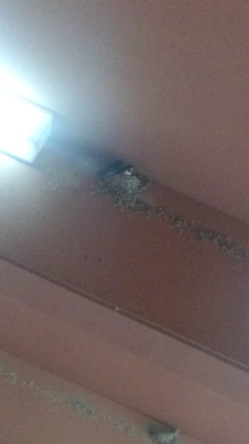 雨が降ってないので、学級写真を撮影しました。自然の家の建物にツバメが巣をつくっていました。