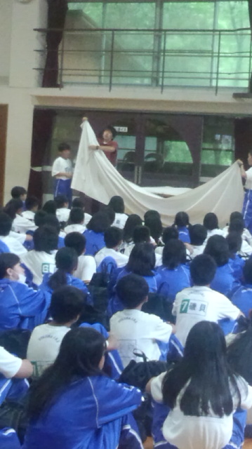 予定より遅くなりましたが、11時37分より、入所式を行いました。代表生徒のあいさつのあと、施設のスタッフの方より、寝具の使い方のオリエンテーションがありました。