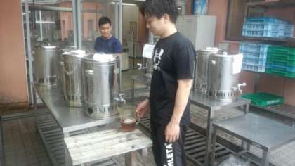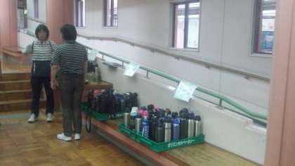 夕食中に、先生方は、生徒たちの水筒にお茶をつめてました。ちょうど今、つめおわったところです。