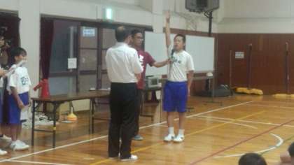 そのあと、体育館の中に集合し、説明を聞いたあと、選手宣誓がありました。