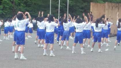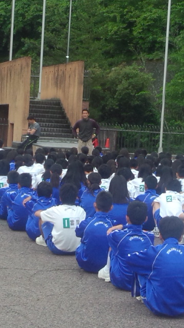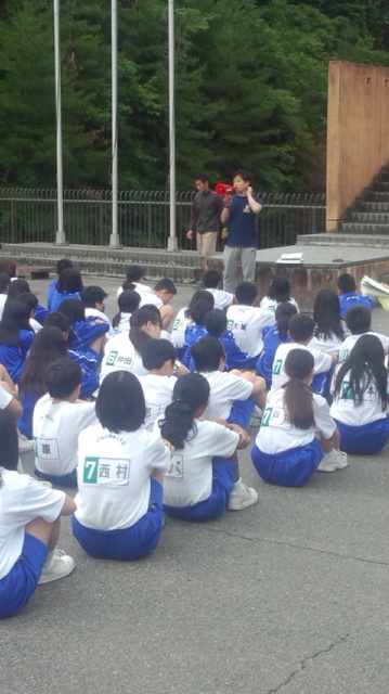 朝のつどいでは、まずはじめにラジオ体操のあと、坂下先生から諸注意、続いて分部先生から、これからのプログラムの説明がありました。