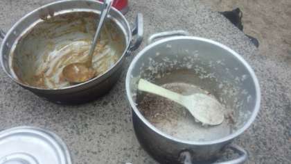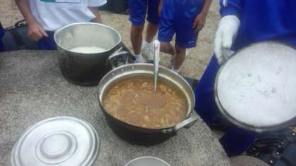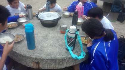 できた班からいただきます。みんな完食でした。カレースープになった班は、少し残りました。