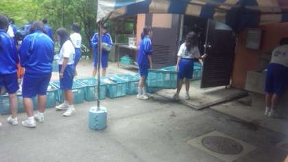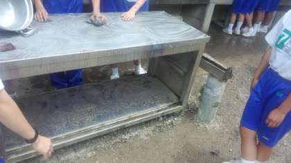 点検は、まだまだ続きます。第2炊飯場で一生懸命磨いていました。しばらくして行くとピカピカになってました。