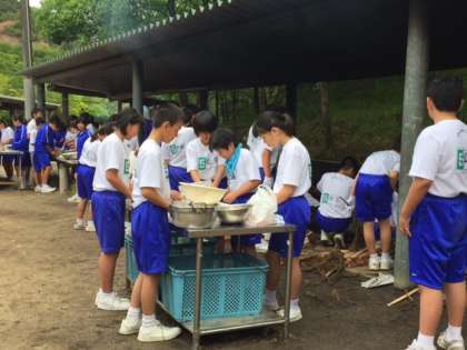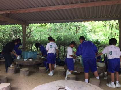 5・6組の調理準備とかまど野外炊飯