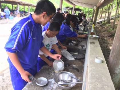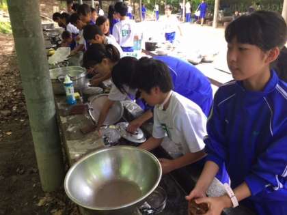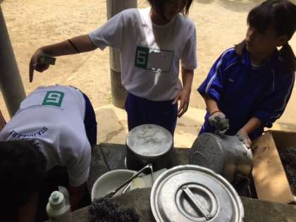 亀の子たわしやスチールウールを手に持っての片づけです。