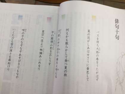 教材は言葉を磨く「俳句十句」で、俳句の決まりから表現の工夫と効果に着目して、その俳句の情景をとらえて心情を考える授業でした。