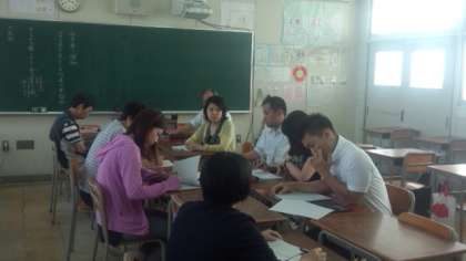 写真は、国語と数学の研究協議会の様子です。