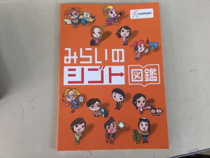 生徒たちは積極的に参加して、今後の進路選択に向けて自分の特徴を生かしながら、自分を育てていく楽しげな授業でした。カラフルな「みらいのシゴト図鑑」を全員1冊いただき、さっそく職業選択の参考に読んでいました。