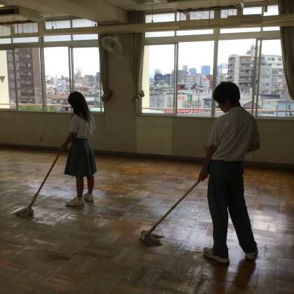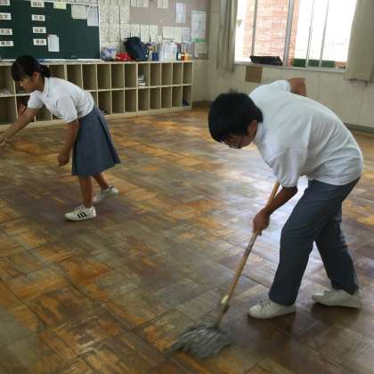 砂ぼこりが多く床面が傷んでいたせいなのか、ワックスの伸びが悪く、なかなか輝きが出ませんでした。汗をかきながら懸命なワックスがけでした。