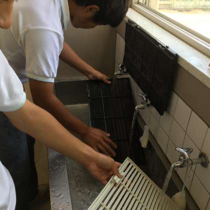 また昨日できなかった、エアコンのフィルターの掃除と洗いも丁寧にしてくれていました。同様に扇風機の羽根を外しての洗いも、各所で見かけました。