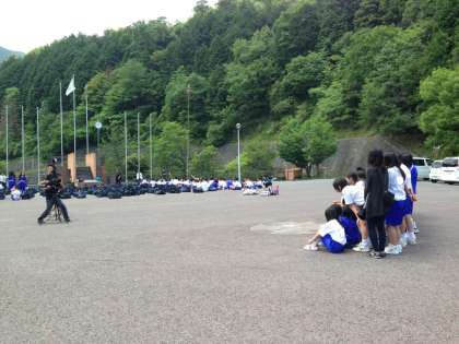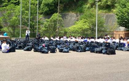 その奥には、綺麗に並んでいる待っている生徒とカバンたち。