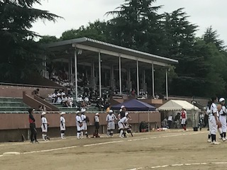 「本日9時30分より、ソフトボール部は三回戦狭山中学校と対戦します。