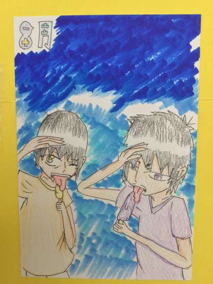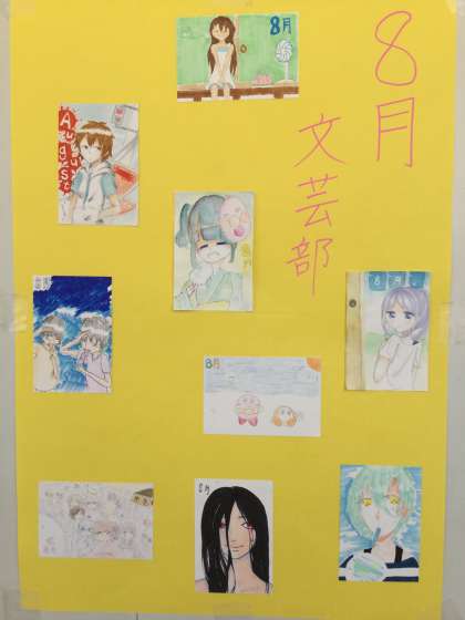 この文芸部のはがき大の作品にも、鮮やかな色使いで丁寧に書かれてあり、夏の情景があふれていました。