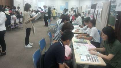 あす、8月6日(日)も、12時から4時までの時間に開催されます。今日とは、違う38の高校のブースが設置されます。本日来場された皆さんも、本日来場出来なかった皆さんも、ご来場ください。